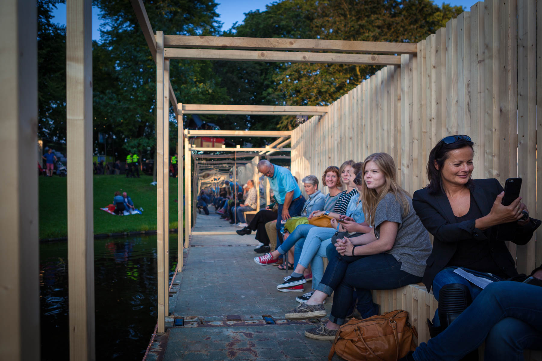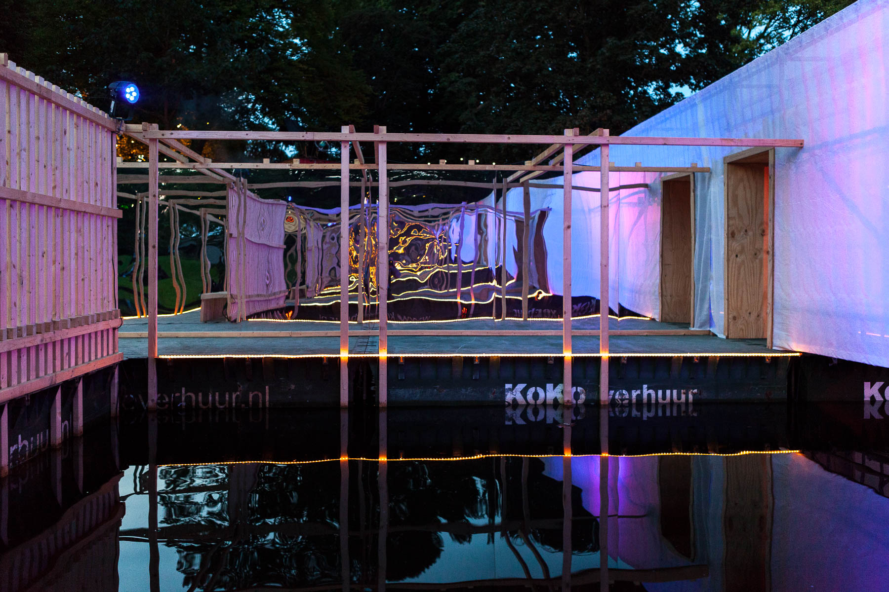 Kunstobject en tijdelijke brug tijdens festival Noorderzon.