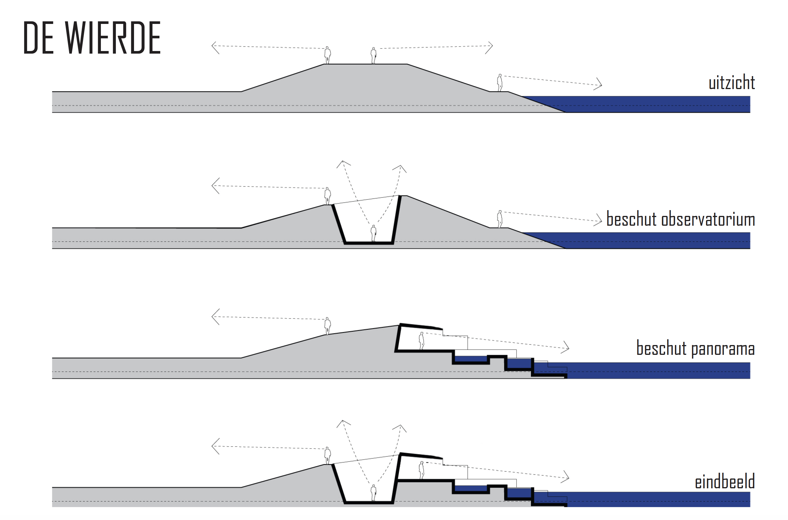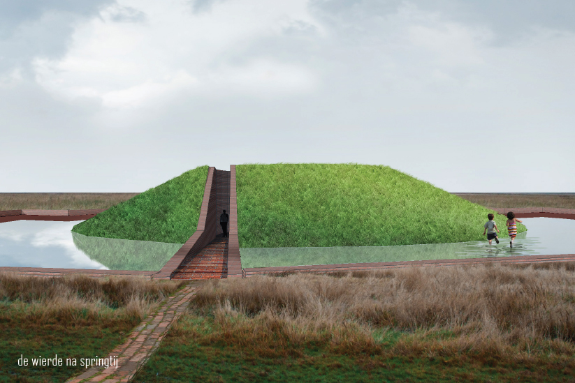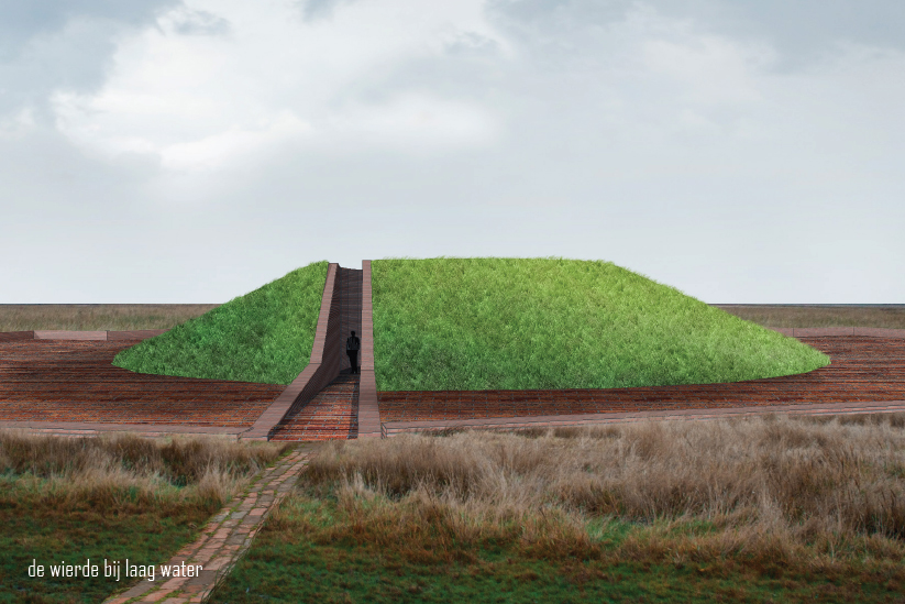 Noordpolderzijl , 2016Prijsvraag voor een nieuwe wierde namens Groninger landschap en Noorderbreedte. Tweede prijs.