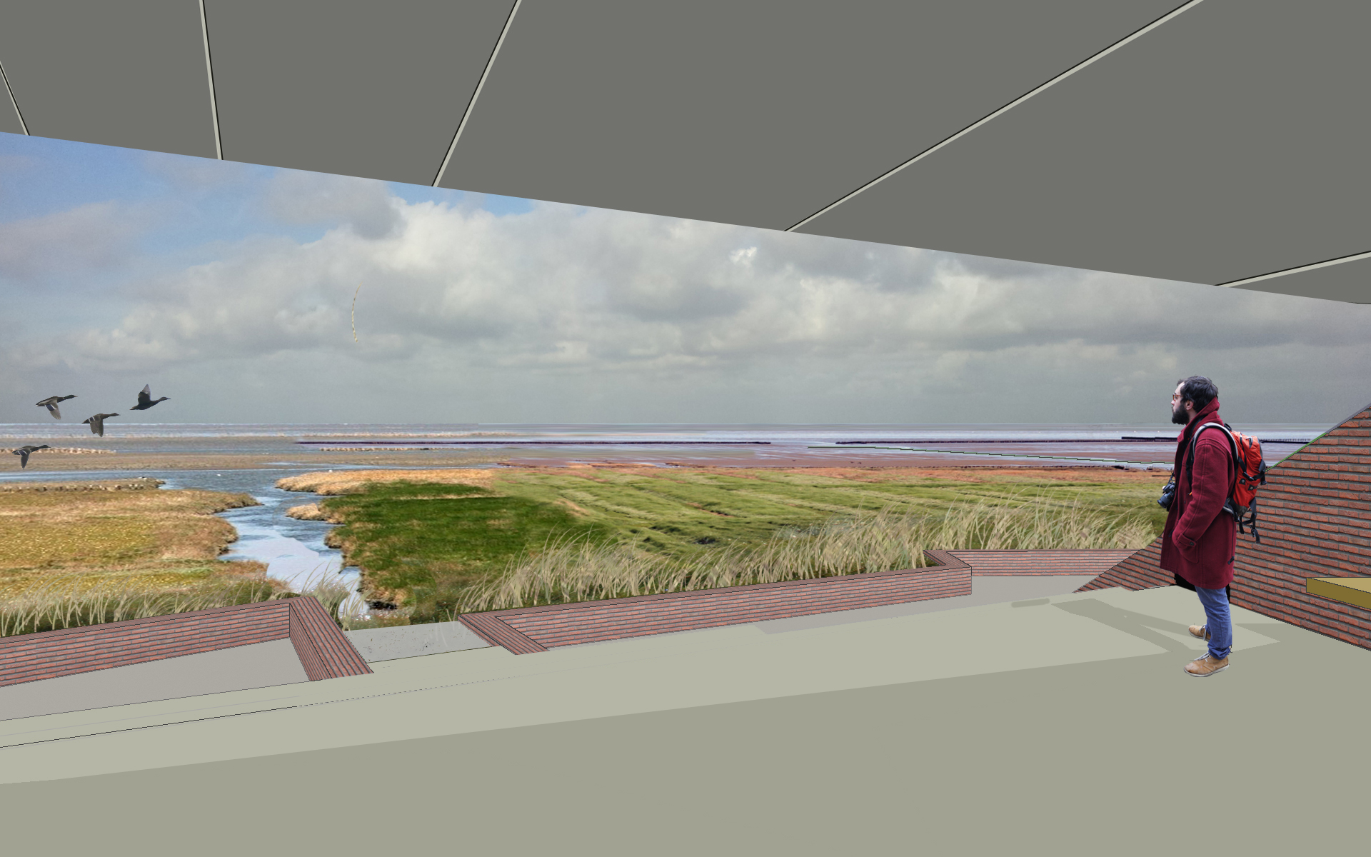 “Eb en vloed worden speels en verrassend naar de wierde toegehaald en vastgehouden, evenals de luchten boven het Wad, die door een observatorium in de kern van de wierde als het ware naar binnen worden gezogen.”